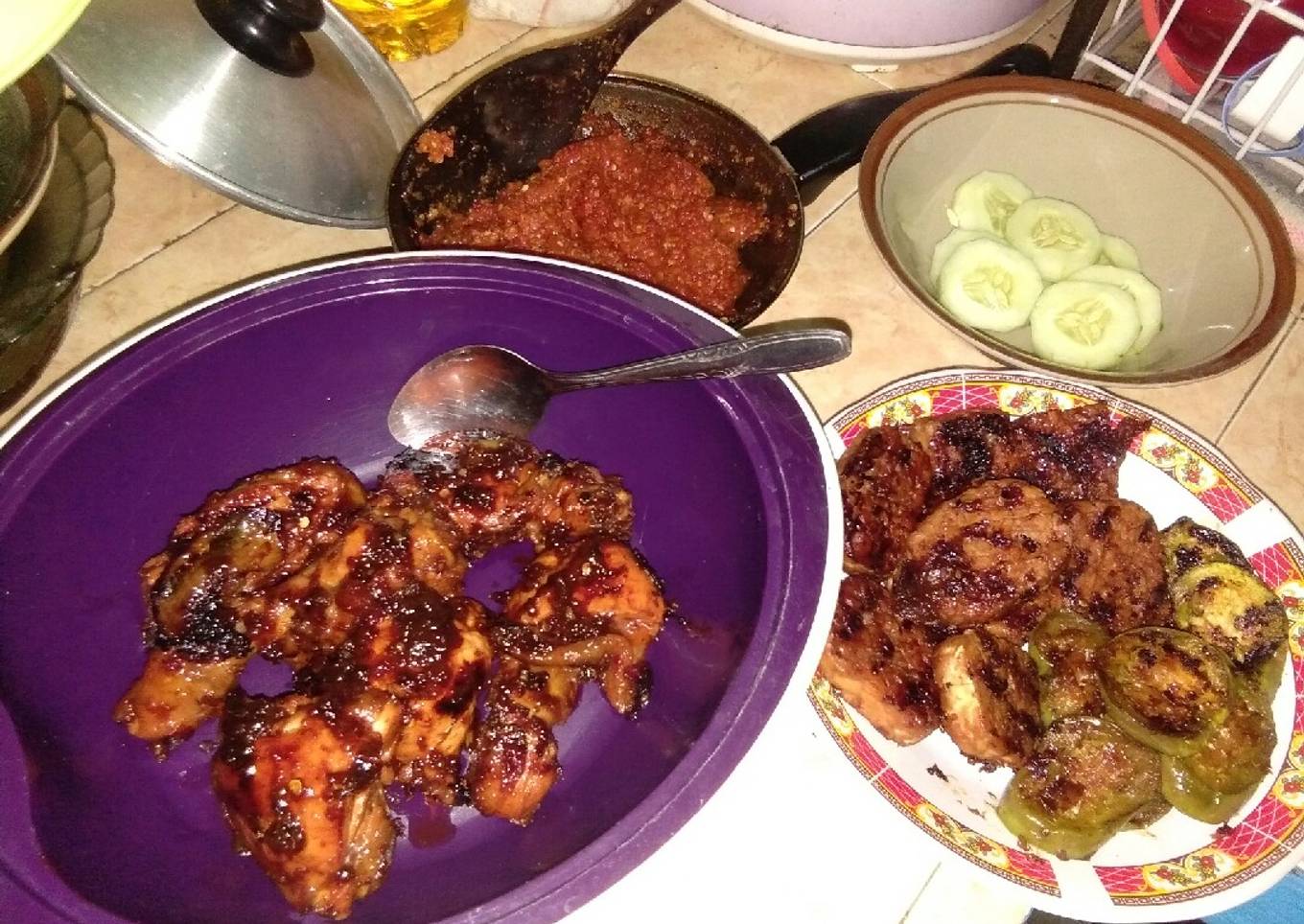 - Setelah semua dibakar diatasnya bisa ditambahkan sisa.an bumbunyan boar makin menggoda.. Ayam, Tempe, Terong Bakar siap disajikan dengan cinta ๐.. tambahin sambel sama lalapan makin endes ya..