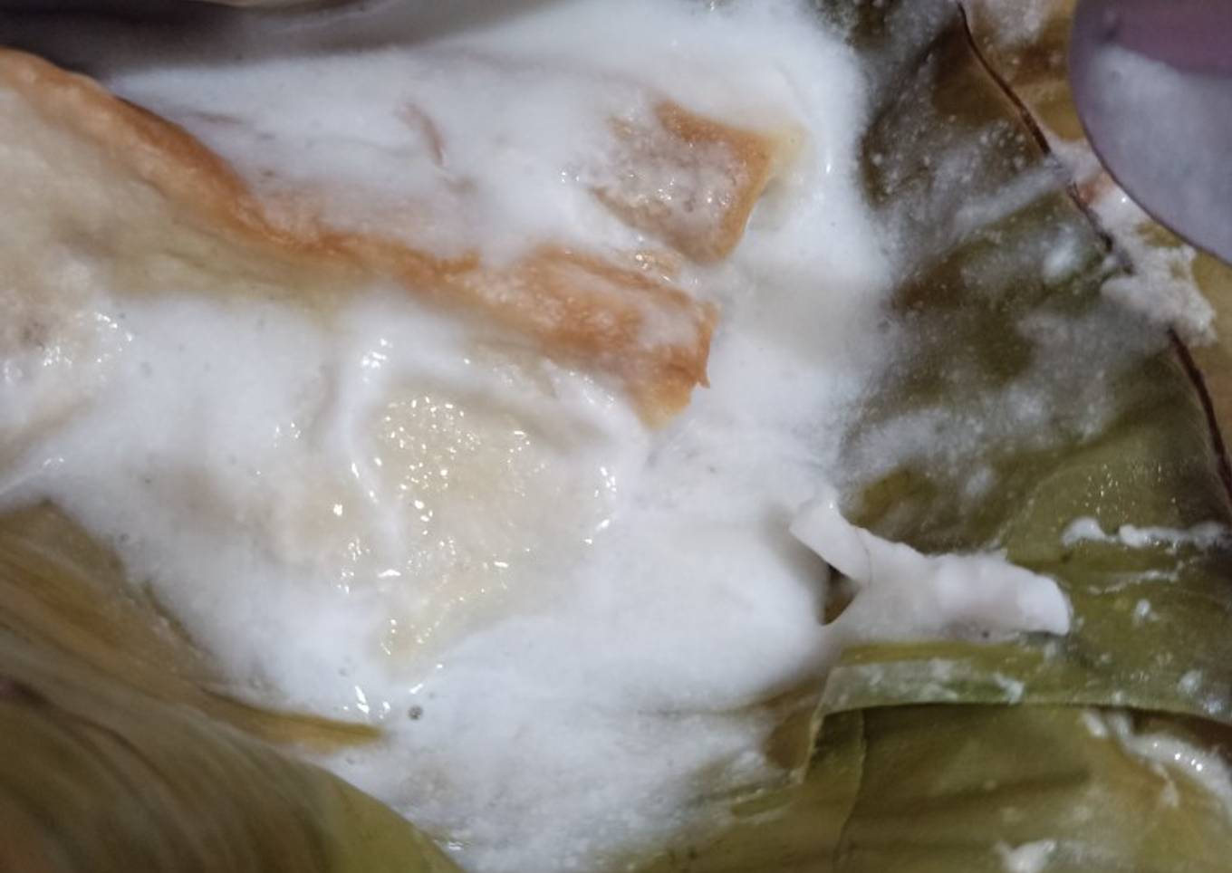 - Masukan bungkusan daun tadi ke dalam panci pengukus (panaskan terlebih dahulu selama 10 menit)kukus selama 15 menit,matikan api,keluarkan dari panci pengukus & sajikan.
