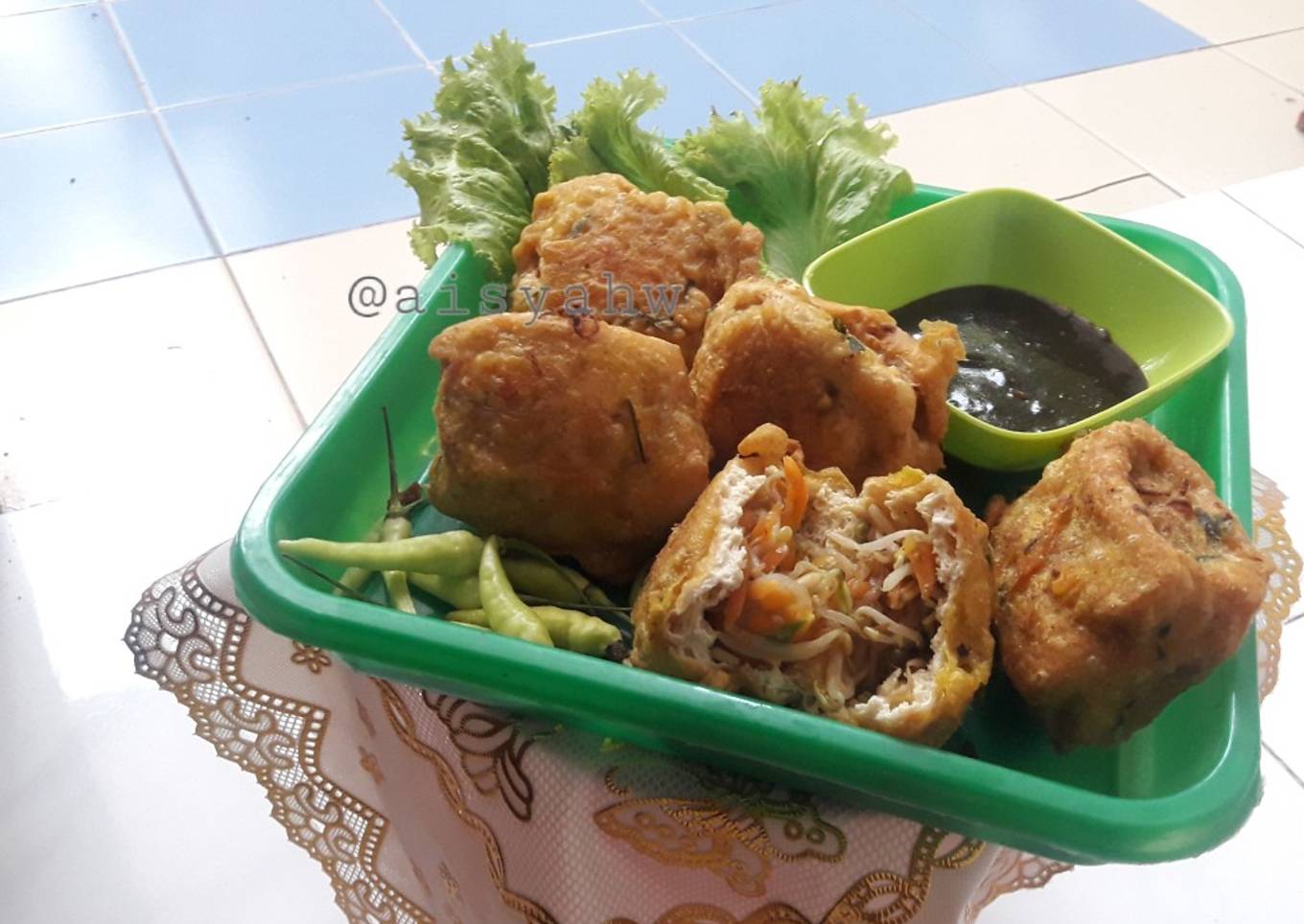 - Haluskan bumbu dan ampur bahan adonan, lali baluri tahu isi, dan siap di goreng