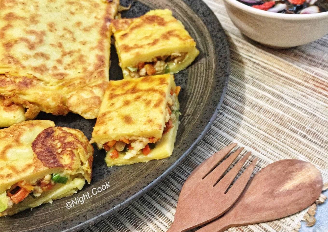 - Martabak Telur Isi Ayam siap disajikan untuk hidangan berbuka.