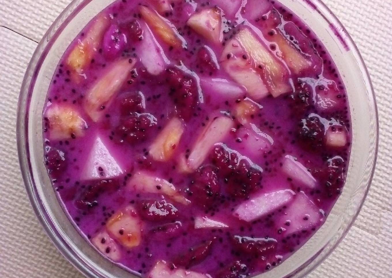 - Done ❤ simpan dalam kulkas dan sop buah sirup gula pandan siap untuk dinikmati ๐