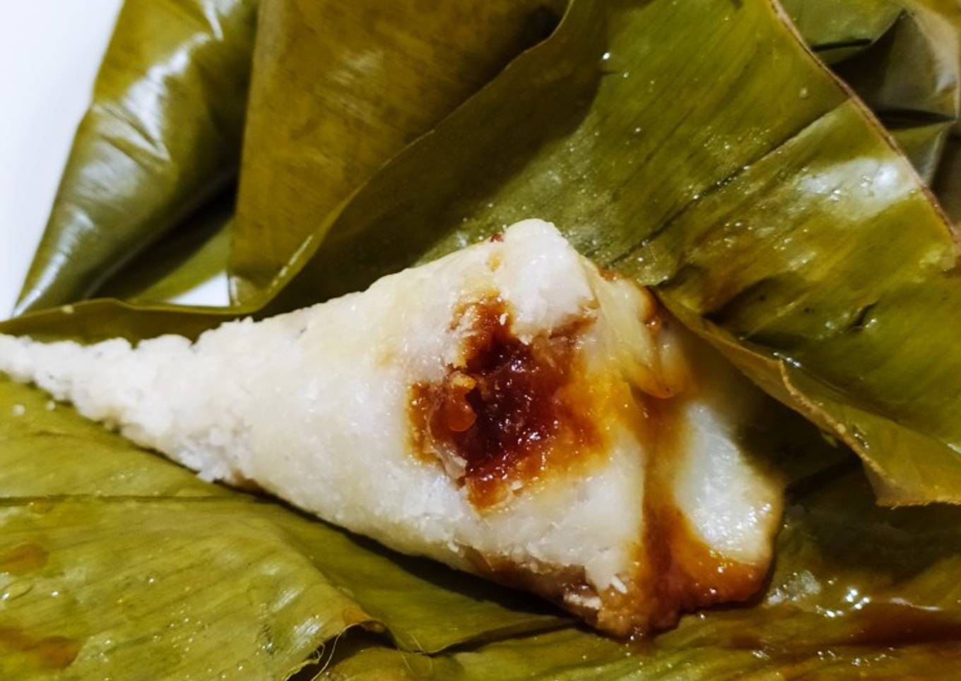 - Siapkan daun pisang,bentuk kerucut,masukan adonan kurleb 1 sdm,lanjut beri ptongan gula merah lalu ttup lagi dengan adonan.kmudian sematkan dgn lidi.lakukan hingga adonan habis